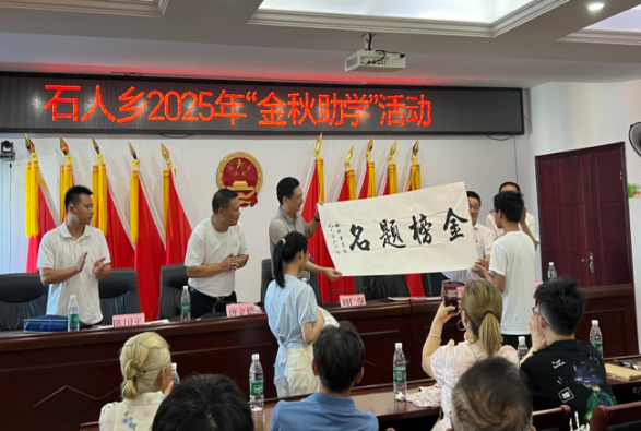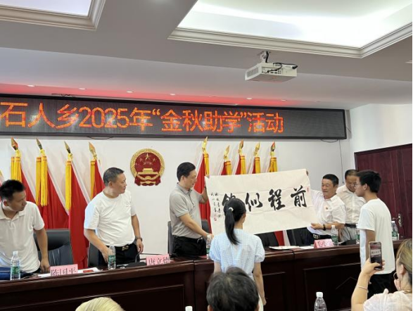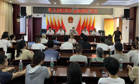 8月23日,秋来桂馨,硕果丰艳。石人乡政府三楼会议室举行2025年“金秋助学”活动。石人乡党委书记刘仁强、石人乡党委委员陈地湖、江西一路有你公益服务中心党支部书记毛小宝、石人商会会长唐立德、常务副会长陈国平和受助学生以及家长共计100人左右参加了“金秋助学”活动仪式。